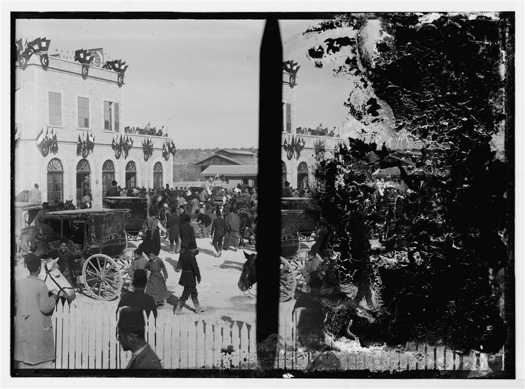 State visit to Jerusalem of Wilhelm II of Germany in 1898_ Crowd at Jerusalem railroad station; [Another view of crowd at Jerusalem railroad station.jpg